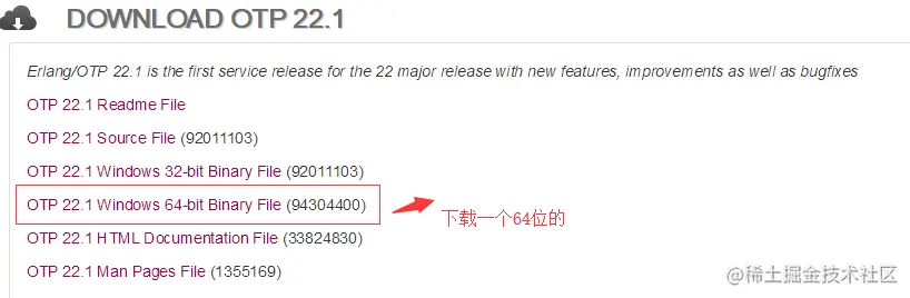 PS:这里下载的是OTP的22.1的版本,我的理解是Erlang等于C#语言,而OTP等于NetFramework。