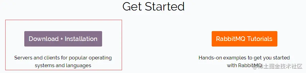 首先,我们访问官网【www.rabbitmq.com/】,点击Get Started。