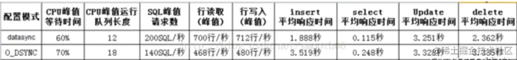 2、O_DSYNC方式表示以同步io的方式打开文件,任何写操作都将阻塞到数据写入物理磁盘后才返回。这就造成CPU等待加长,SQL请求吞吐能力降低,insert时间拉长。