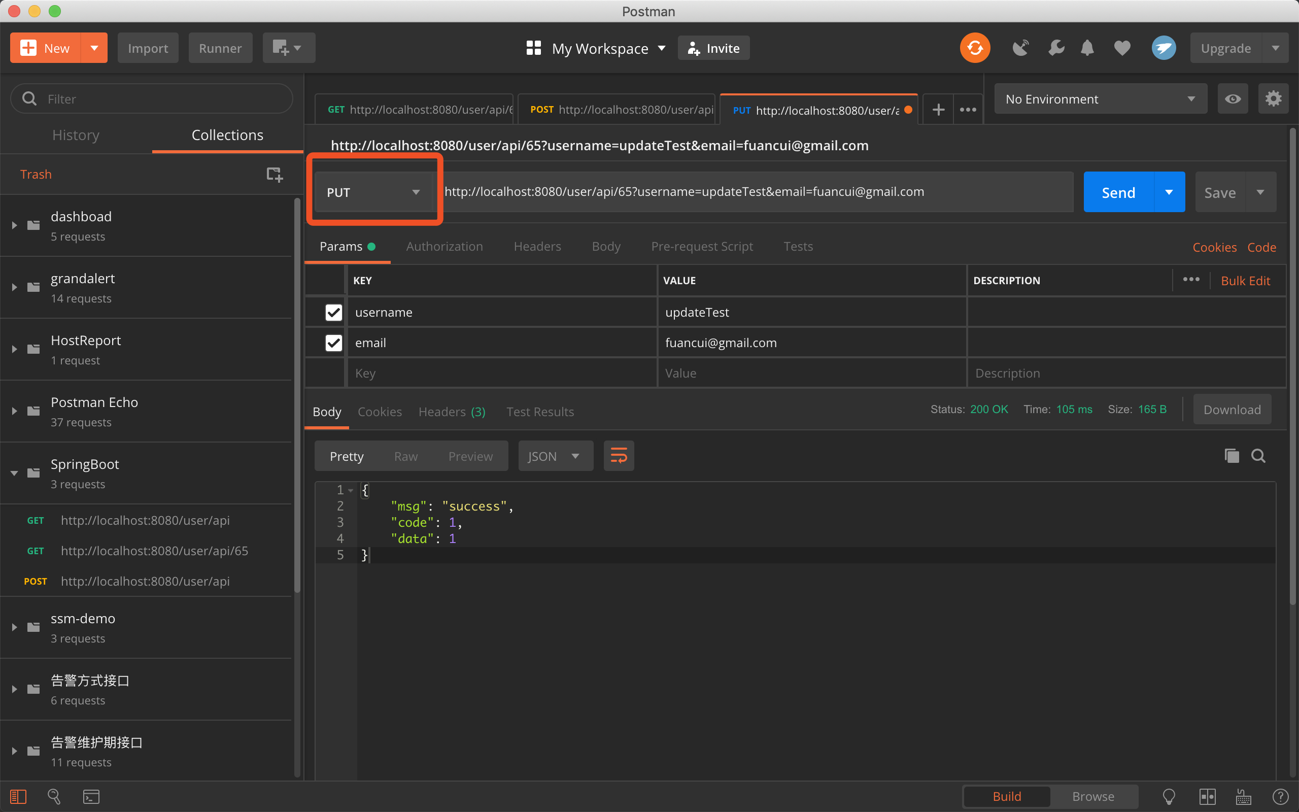 HTTP PUT请求/user/api/65 来更新用户信息
