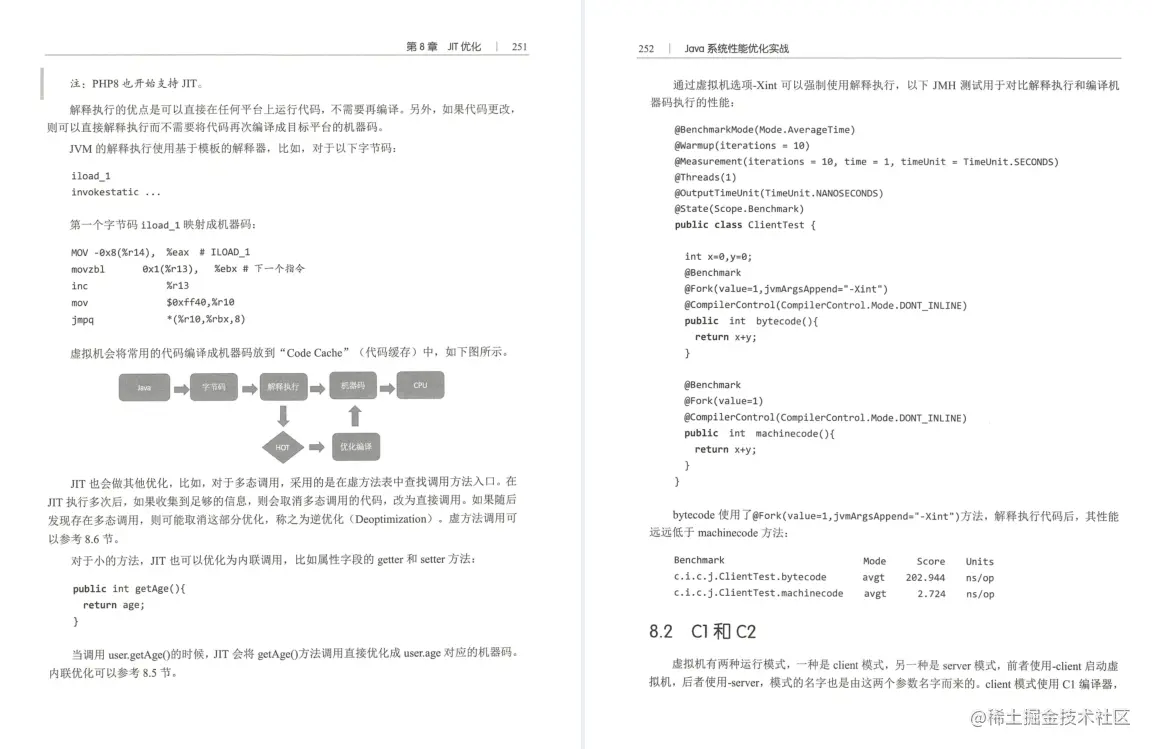 第三部分是第8章,介绍JIT优化。JIT优化对Java系统运行有深刻的影响,本章系统介绍了JIT编译器、代码缓存、内联等知识。