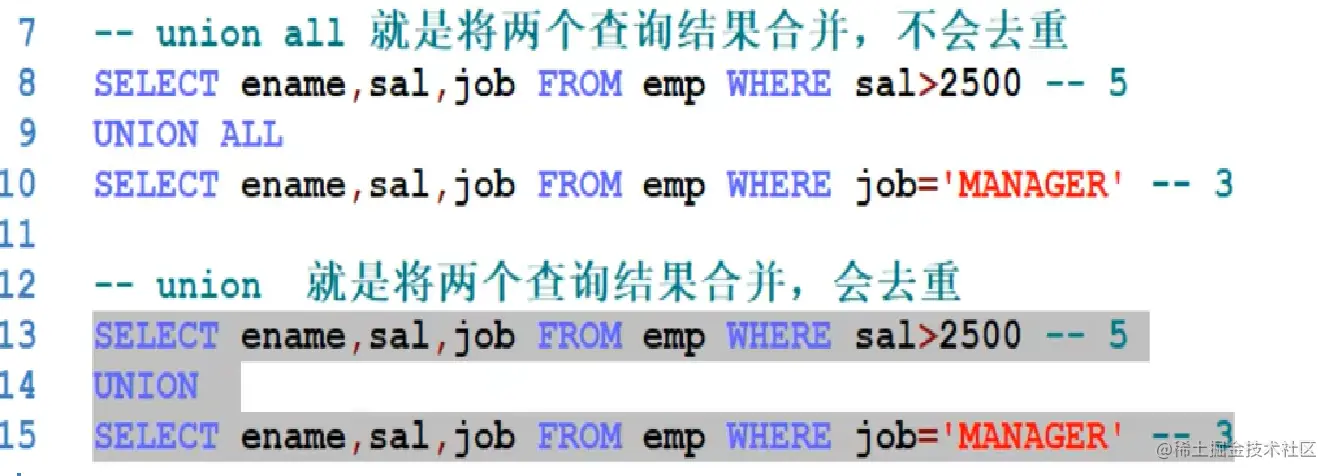 有时我们会遇到 不方便使用where语句的情况 但是我们需要将两个查询结果合并,此时便可以使用合并查询