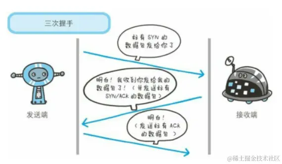 为了准确无误地将数据送达目标处,TCP协议采用了三次握手(three-way handshaking)策略。用TCP协议把数据包送出去后,TCP 不会对传送后的情况置之不理,它一定会向对方确认是否成功送达握手过程中。使用了TCP的标志(flag)—SYN(synchronize)和ACK(acknowledgement)。