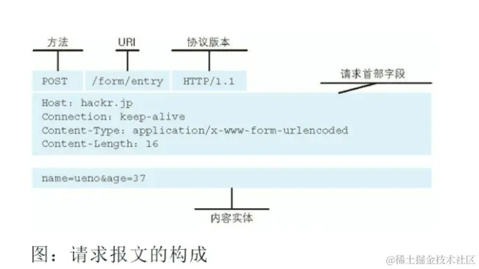 - 浏览器向服务器发送一条HTTP请求报文