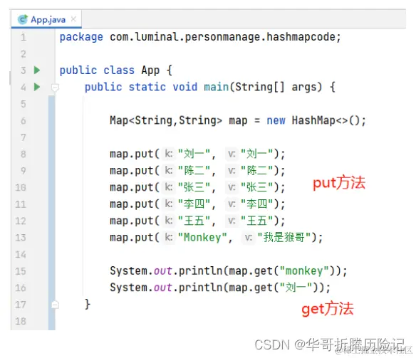 第一个,我们这个hashmap它是什么?它是可以用来存储数据的,那存储数据的话,我们是用他的这个put的方法。
