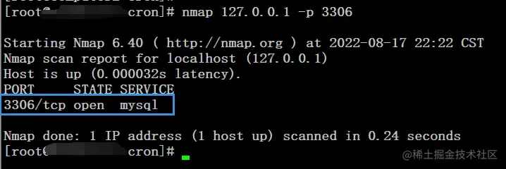 我们将redis的端口由原先的6379修改为3306,我们使用nmap扫描下。