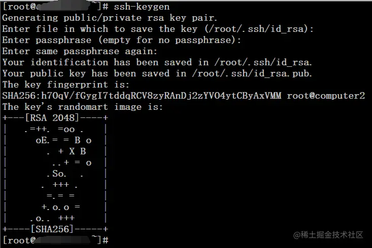 如上命令执行成功后,我们会得到2个文件,id_rsa我们称之为私钥,id_rsa.pub我们称之为公钥,我们仅需要将公钥发送到想要登录的机器上,我们即可使用无密码登录。