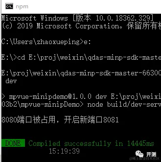 此时需要在cmd中定位到项目路径下,执行wepy build命令,成功后,小程序即可正确预览。每次项目改动后,也要在项目路径下,执行wepy build,重新编译刷新小程序。