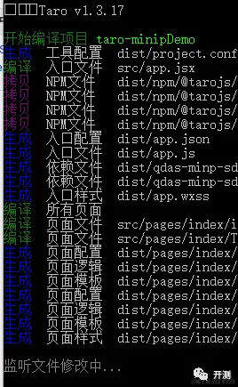 同样使用微信开发者工具导入Taro框架的项目。在项目目录下执行npm run dev:weapp命令。