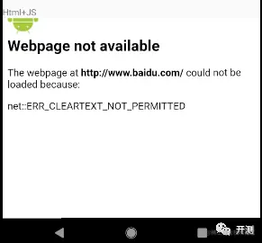 否则会出现以下错误(这是由于从Android 9.0(API级别28)开始,默认情况下限制了明文流量的网络请求,对未加密流量不再信任,直接放弃请求,因此http的url均无法在webview中加载,https 不受影响):