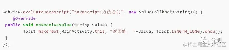 4.4以前仅仅可用loadUrl调用js方法,4.4以后才可通过evaluateJavaScript调用js获取到返回值;
