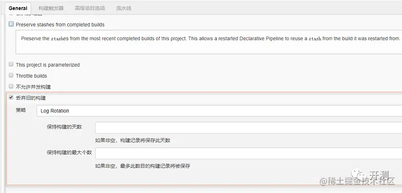 想保留最近几次历史构建就可以勾选此项并填入想要保留的构建次数。每次构建都需要占不少的空间,因此不建议大量保存构建历史。