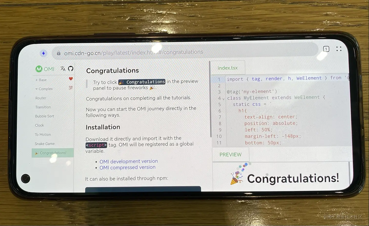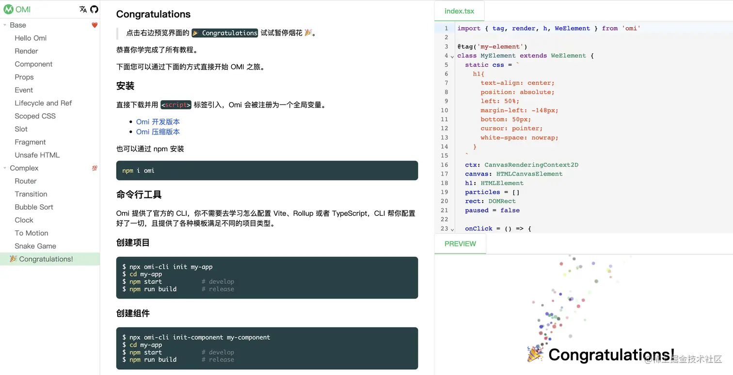 OMI 互动教程可以通过 omijs.org 或者 tencent.github.io/omi/ 找到入口。