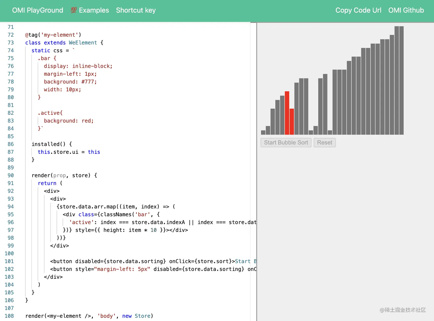 所以我们打算从零开始重写 playground,使用 OMI 从零开发 OMI 互动教程站点。