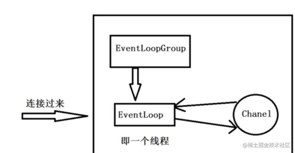 解释一下,当一个连接过来,Netty首先会注册一个channel,然后EventLoopGroup会分配一个EventLoop绑定到这个channel,在这个channel的整个生命周期过程中,这个EventLoop一直为他服务,这个玩意就是一个线程