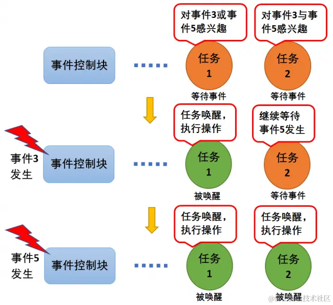 我们创建两个任务,一个触发事件任务,一个等待事件任务。
