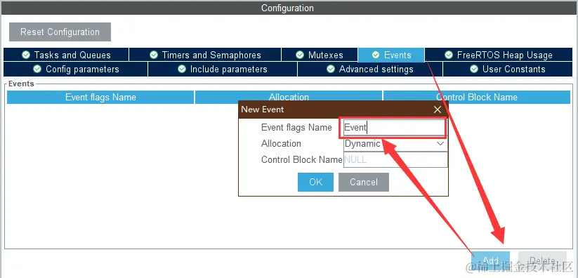 - Event flags Name: 事件组名称