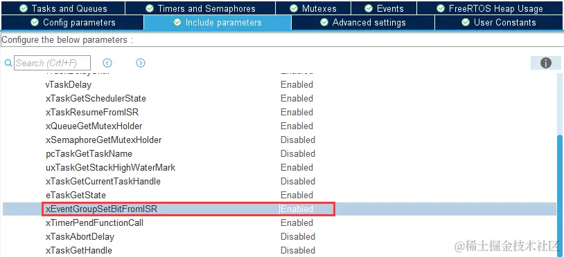 如果要使用事件,要在 Middleware 中选择 FREERTOS 设置,并选择 CMSIS_V2 接口版本