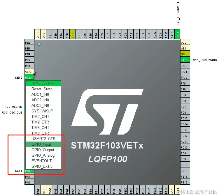 在右边图中找到按键对应引脚,选择