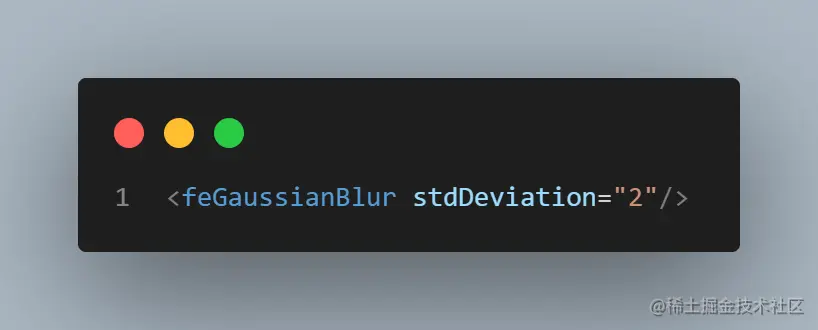 当前使用的是feGaussianBlur滤镜基元,用stdDeviation属性指定它的模糊度,这个数值越大,模糊度越高。如果给stdDeviation值提供两个由空格分隔的数字,第一个数字被作为X方向的模糊度,而第二个被作为Y方向的模糊度