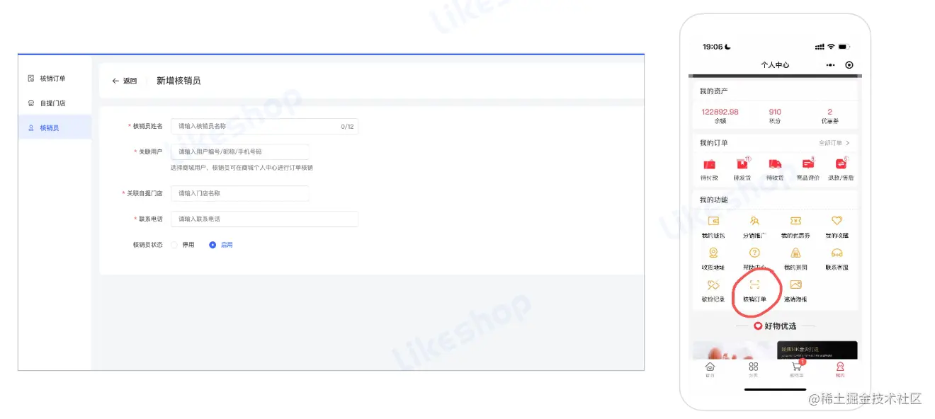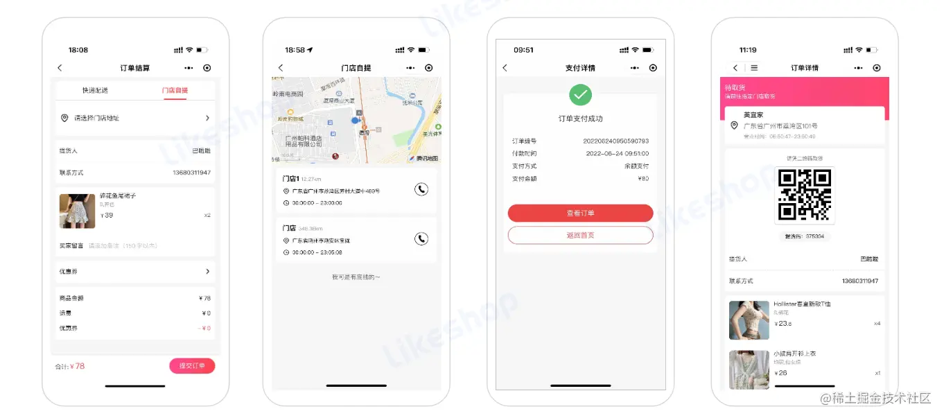下单的时候选择门店自提的方式,前往指定的门店提货,需要核销员对订单进行核销,订单才算完成