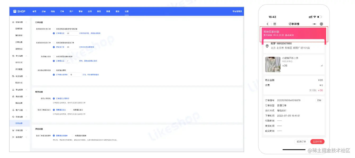设置订单自动取消、完成时间,订单售后退款时长。具体看各配置描述信息