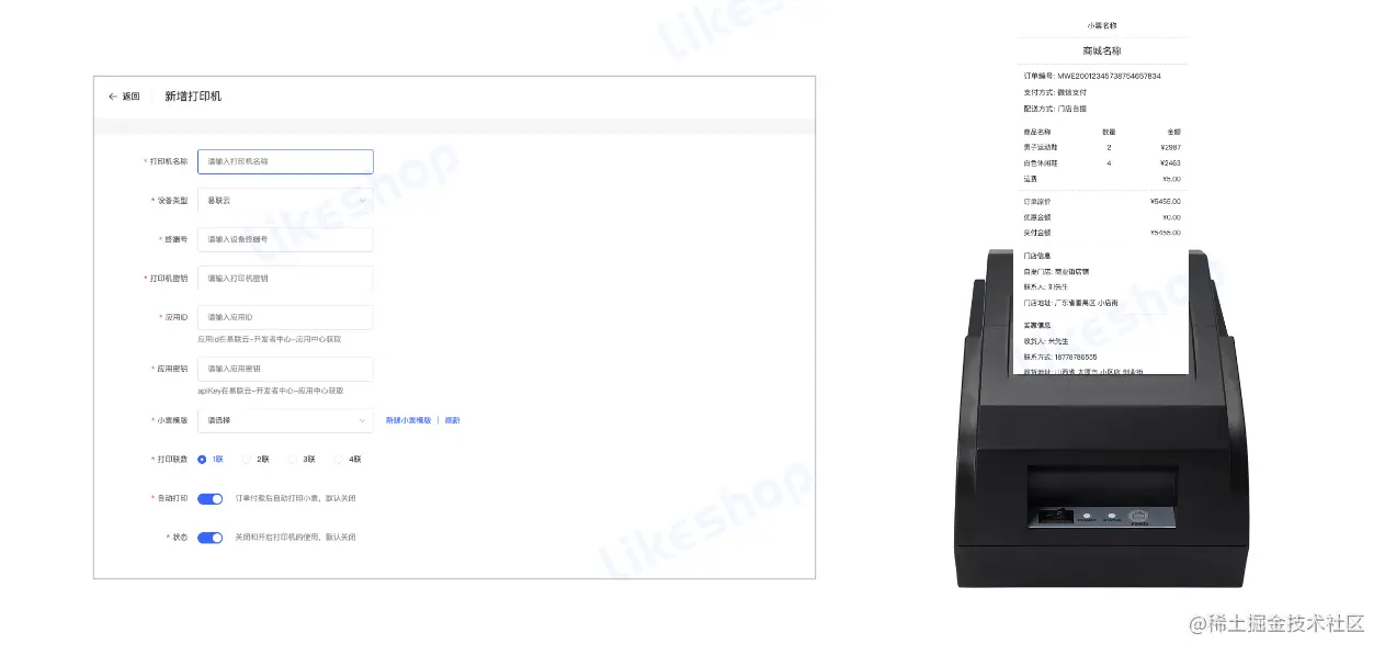 接入易联云等第三方硬件设备,实现自动打印订单小票,方便门店管理订单