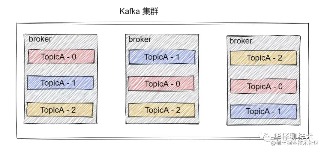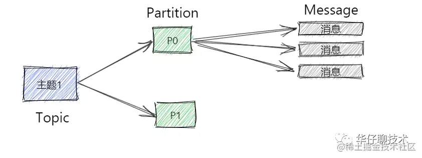 - Partition:为了实现Topic扩展性,提高并发能力,一个非常大的 Topic 可以分布到多个 Broker 上,一个 Topic 可以分为多个 Partition 进行存储,每个 Partition 是一个有序的队列。