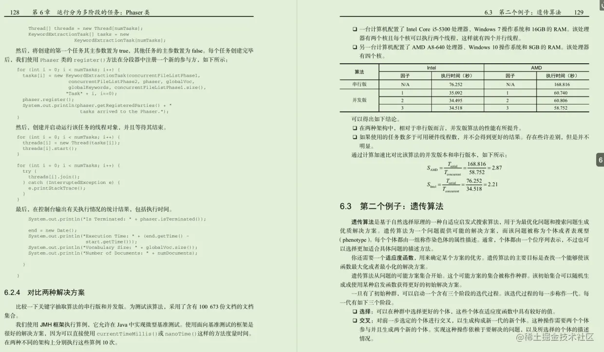 第6章,“运行分为多阶段的任务: Phaser类”。这一章将介绍如何使用Phaser类来并发执行那些可分为多个阶段的任务。你将实现关键字抽取算法和遗传算法。