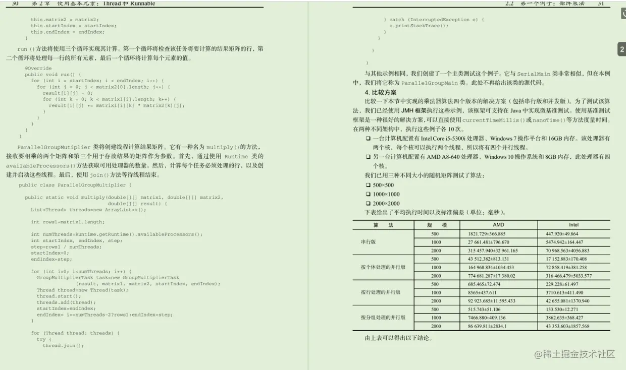 第2章,“使用基本元素: Thread和Runnable”。这一章将解释如何采用Java语言中最基本的元素(Runnable接口和Thread类)来实现并发应用程序。有了这些元素,你可以创建一个可与实际执行线程并行执行的新执行线程。