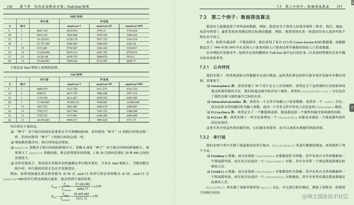 第7章,“优化分支解决方案:Fork/Join框架”。这一章将介绍如何使用一种特殊的执行器,该执行器针对可以使用分治法解决的问题进行了优化,这就是Fork/Join框架及其工作窃取( work-stealing )算法。你将实现k-means聚类算法、数据筛选算法以及归并排序算法。