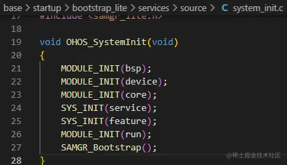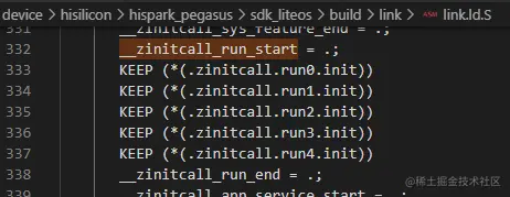 这是个宏定义,展开的调用关系 :\base\startup\bootstrap_lite\services\source\core_main.h定义,从MODULE_CALL、MODULE_BEGIN 、MODULE_END,最终调用的地址是__zinitcall_##name##_start,MODULE_INIT(run)调用的函数地址是__zinitcall_run_start。
