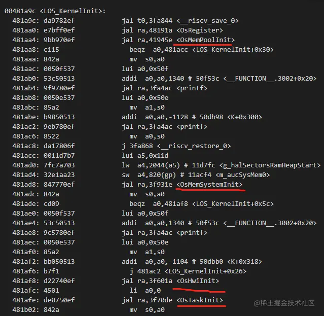 - 嵌入式处理器和操作系统都具有类似的结构启动流程也大体相似,从芯片上电开始Boot把控制权交给操作系统,Hi3861从Boot跳转到操作系统代码如下: