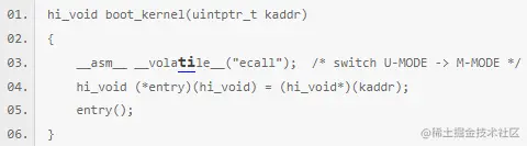 这部分是将该地址当函数作为跳转,因为FlashBoot和kernel,是两套代码程序,他们之间没有依赖引用关系,但是他们在一个地址空间,所以直接地址跳转,这也是从Boot到kernel通用的跳转方式。