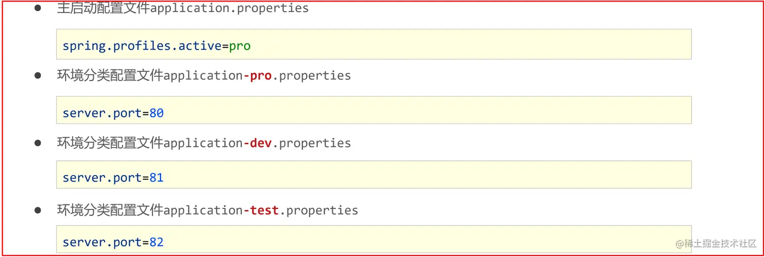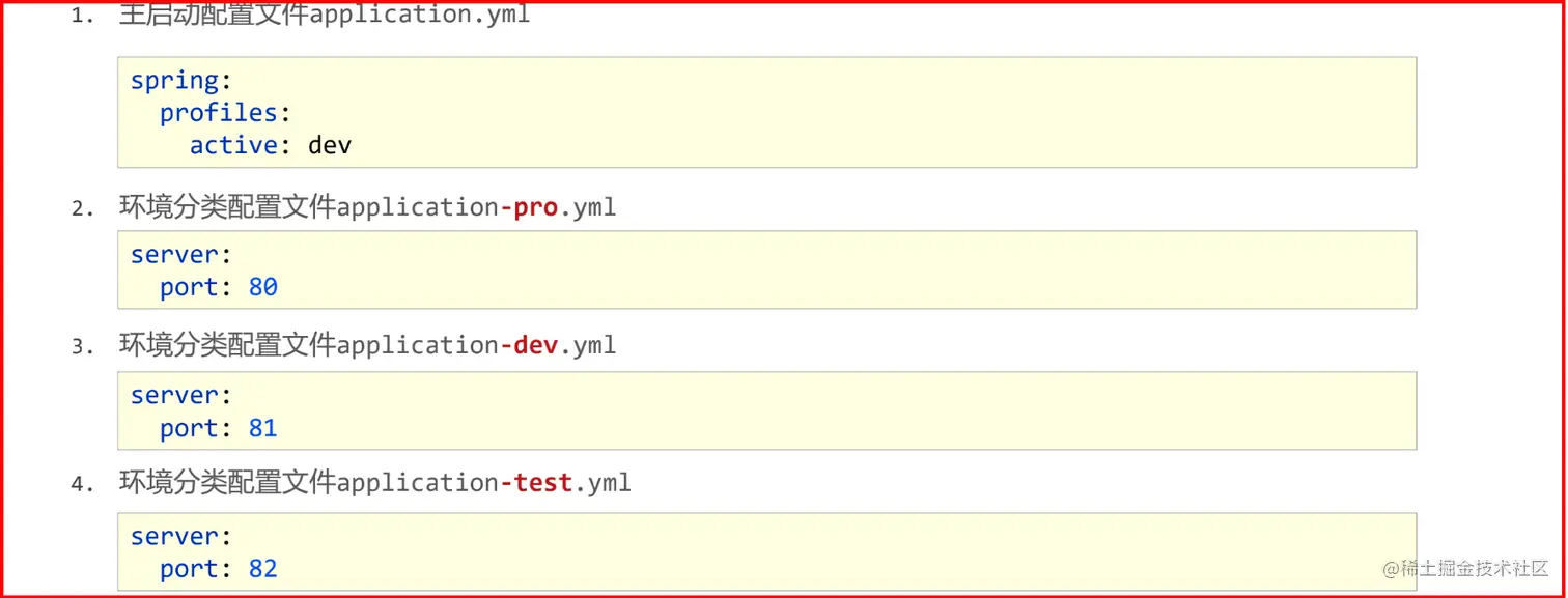 - 多配置文件常用于将配置进行分类,进行独立管理,或将可选配置单独制作便于上线更新维护