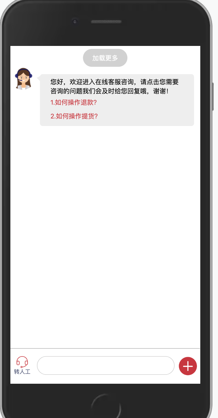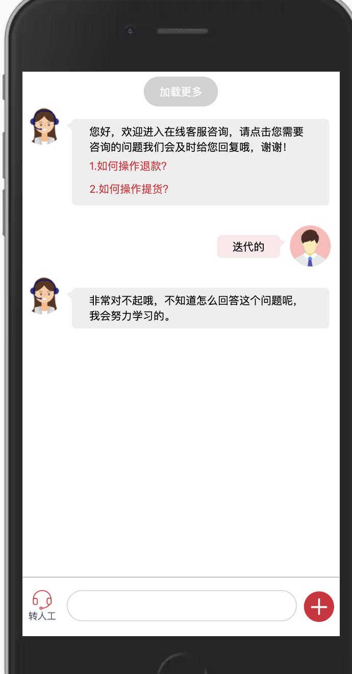 如果客服是机器人的话,用户依然可以发送一些信息给机器人,比如发送一些信息,效果如下: