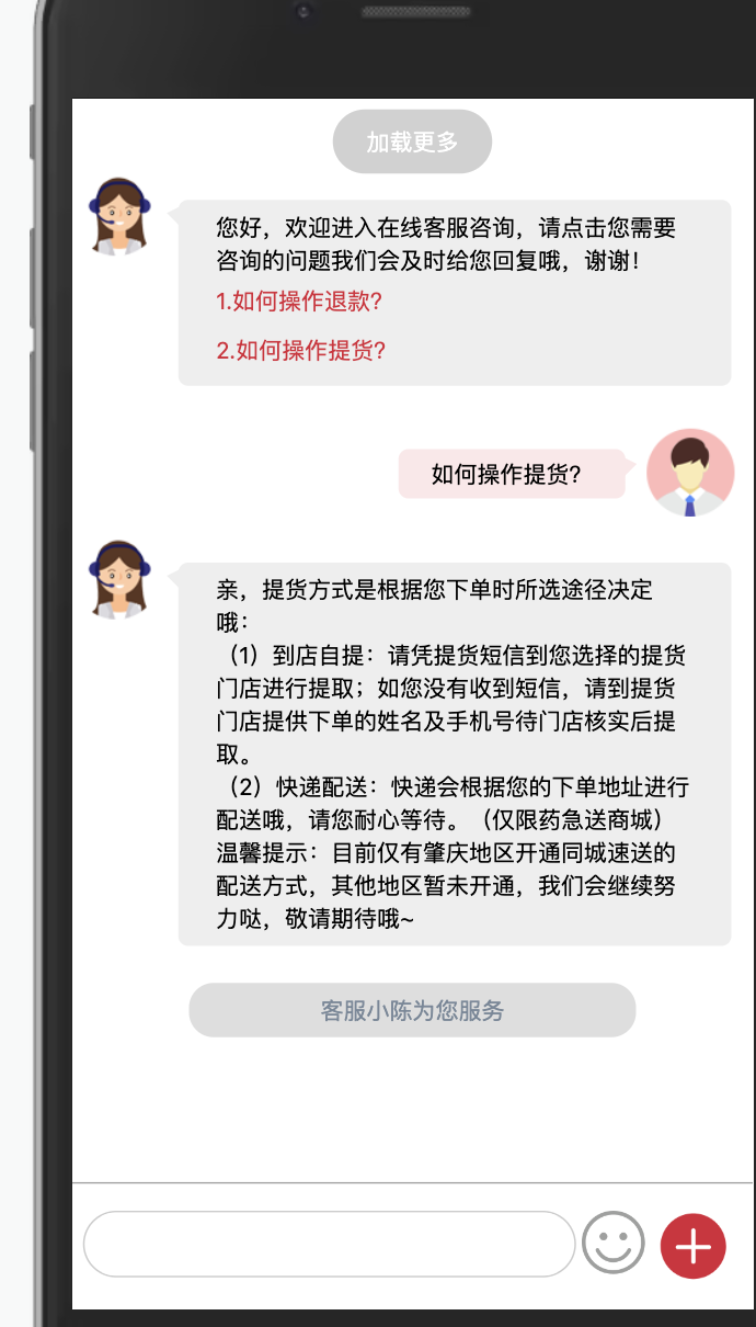 当然也可以点击机器人发送过来的信息,比如查看如何操作退款,如何操作提货等