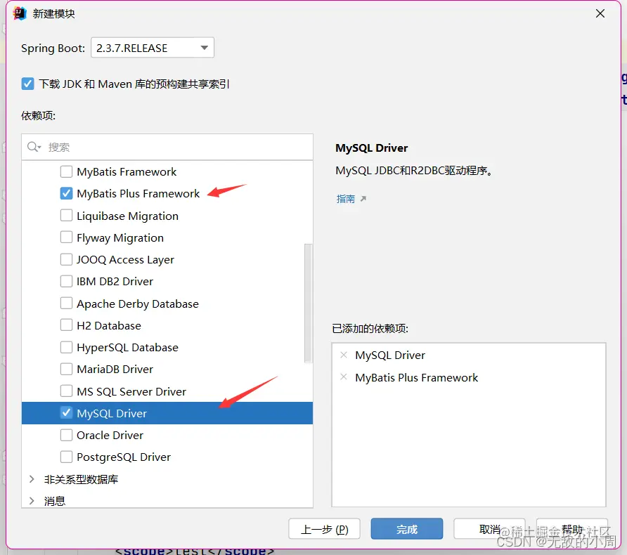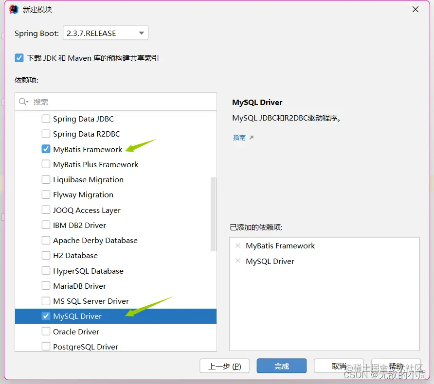Step1:勾选相关技术,也就是导入MyBatis对应的starter