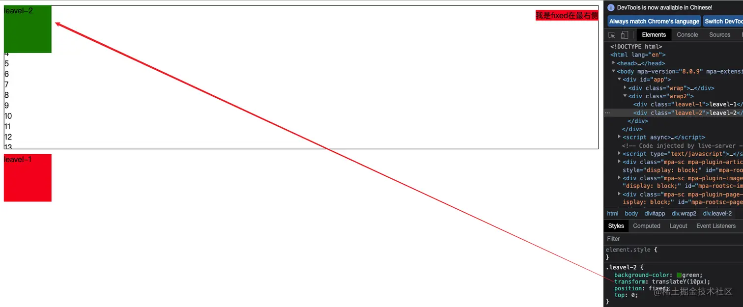 但是恰巧,此时遇上了一个问题fixed失效了,也正是一行css的原因导致的