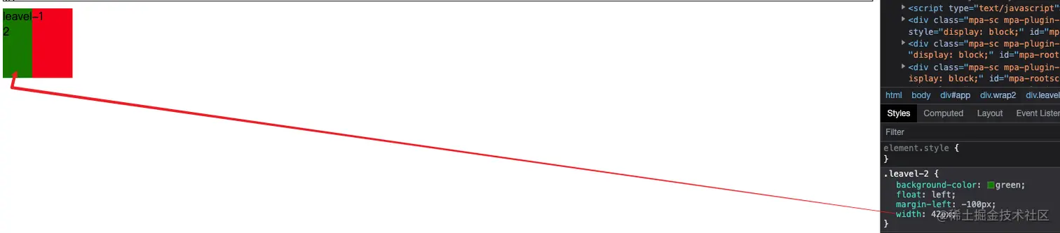 然后我再设置.leavel-2的margin-left: -100px,你就会发现leavel-1被挡住了 初学者可能会好奇,也很容易想到,这
