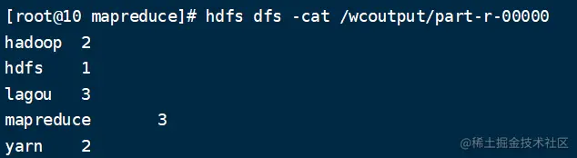 hdfs dfs -cat /wcoutput/part-r-00000