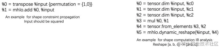 - 分析shape计算的IR或者通过传播已有的shape constraint来获得新的信息,比如: