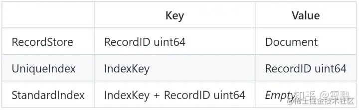 MongoDB 有两大类 Key Value 数据,RecordStore(即 Collection) 和 Index: