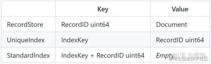 MongoDB 有两大类 Key Value 数据,RecordStore(即 Collection) 和 Index: