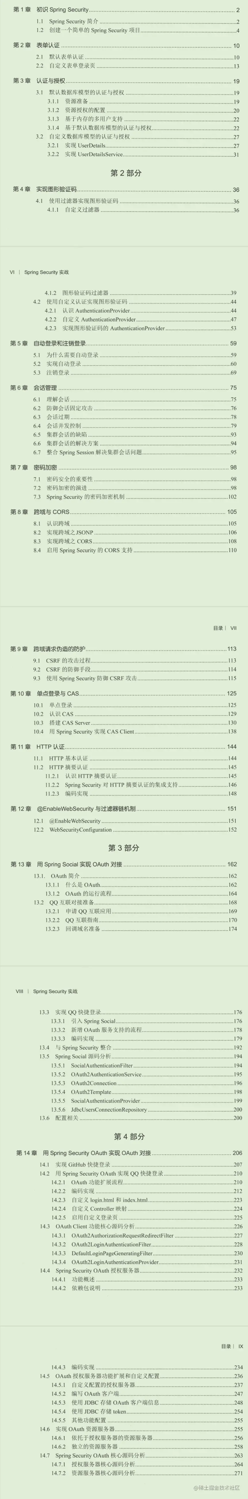 也不知道大家能不能看清,这本书包含了从初识Spring Security到最后的Spring Security OAuth实现OAuth对接****+XXX_WWW666666获取整套来说还是比较全面的