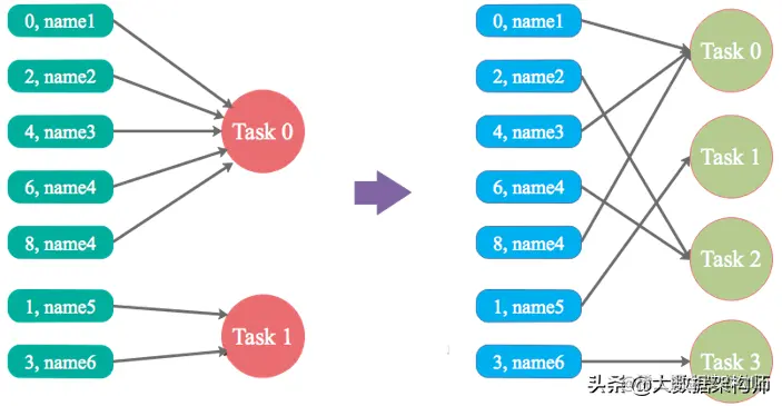 优势: 不影响原有的并行度设计。如果改变并行度,后续Stage的并行度也会默认改变,可能会影响后续Stage。