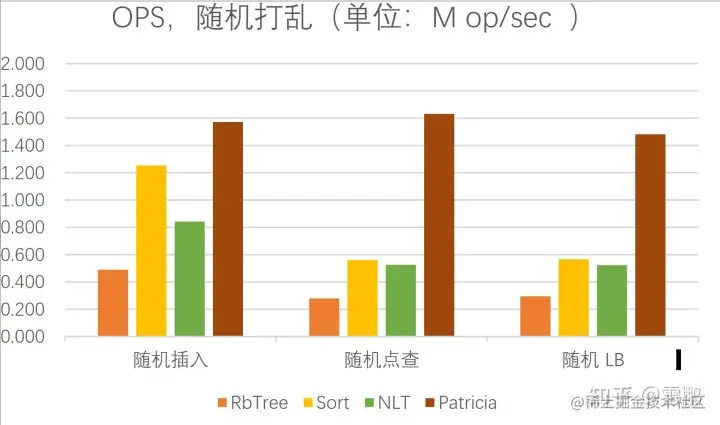 NLT 的点查与 LB 性能比 Patricia 更接近,是因为在 NLT 中,内存的访问更加随机,内存墙造成的影响更大!