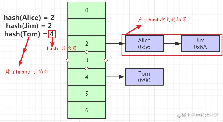 如果在某列上有很多相同的行,比如 name 字段,叫 张三的人非常多。会产生很多次hash冲突,只能退化成列表搜索了