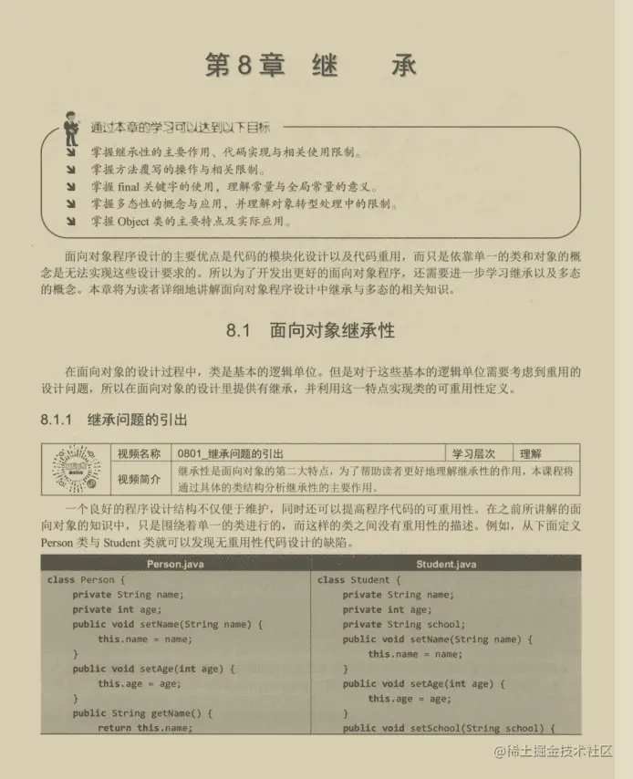 **Java面向对象编程(第5~12章):**类与对象、数组、String类、继承、抽象类与接口、类结构扩展、异常的捕获与处理、内部类。