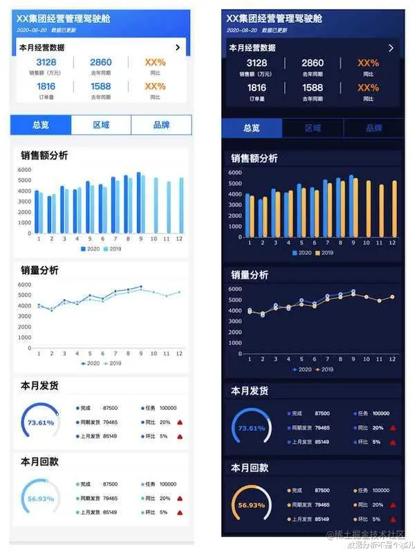 FineReport:支持HTML5形式,支持PC、移动端一套模板,两种解析。移动端效果很不错